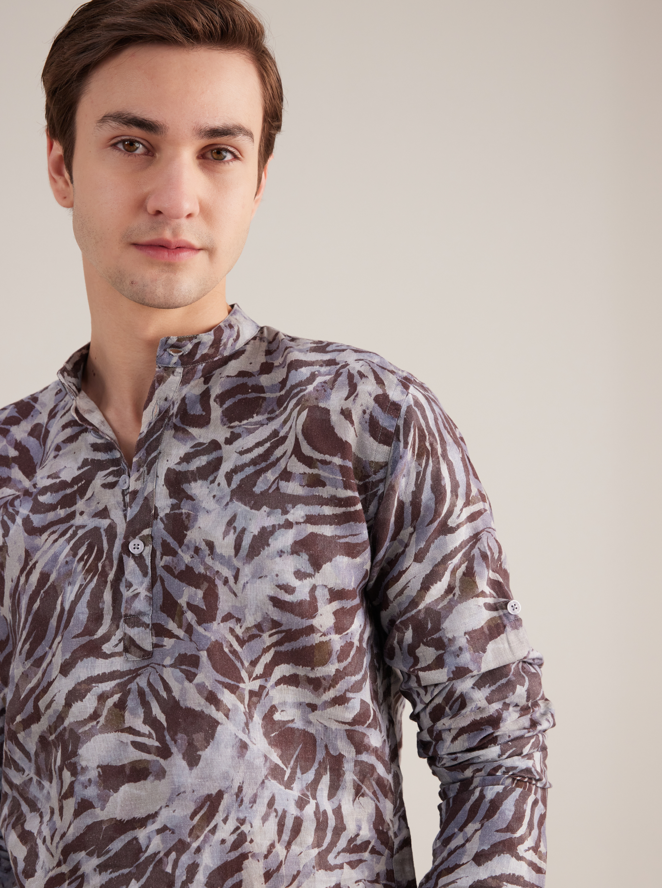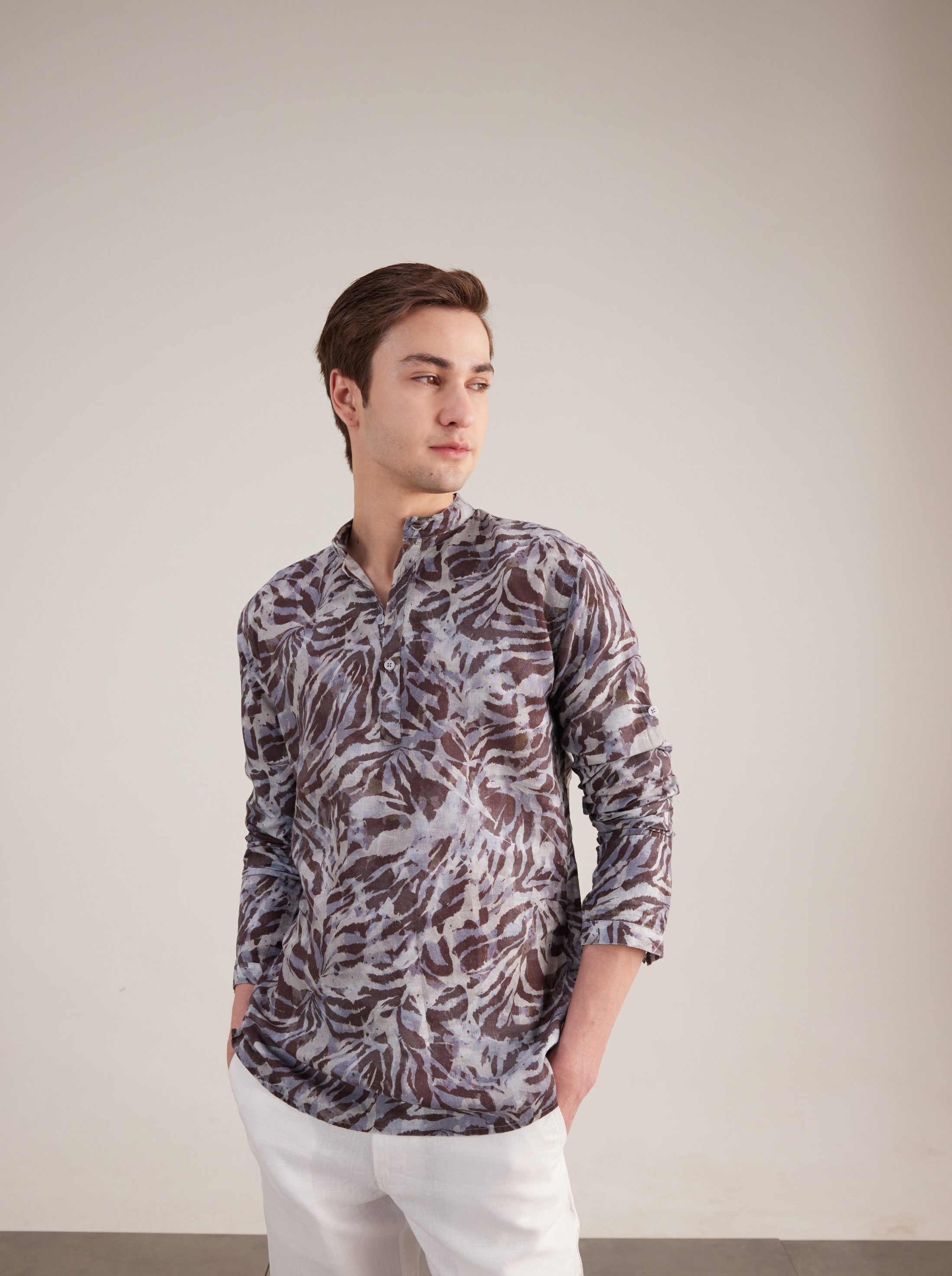 Stay cool and comfortable with our notinghill tile print linen kurta. Crafted from 100% premium linen, it’s lightweight, breathable, and softens with every wear—ideal for long, comfortable days. Featuring a mandarin collar, full sleeves, and practical side pockets, it merges everyday functionality with subtle artistry.