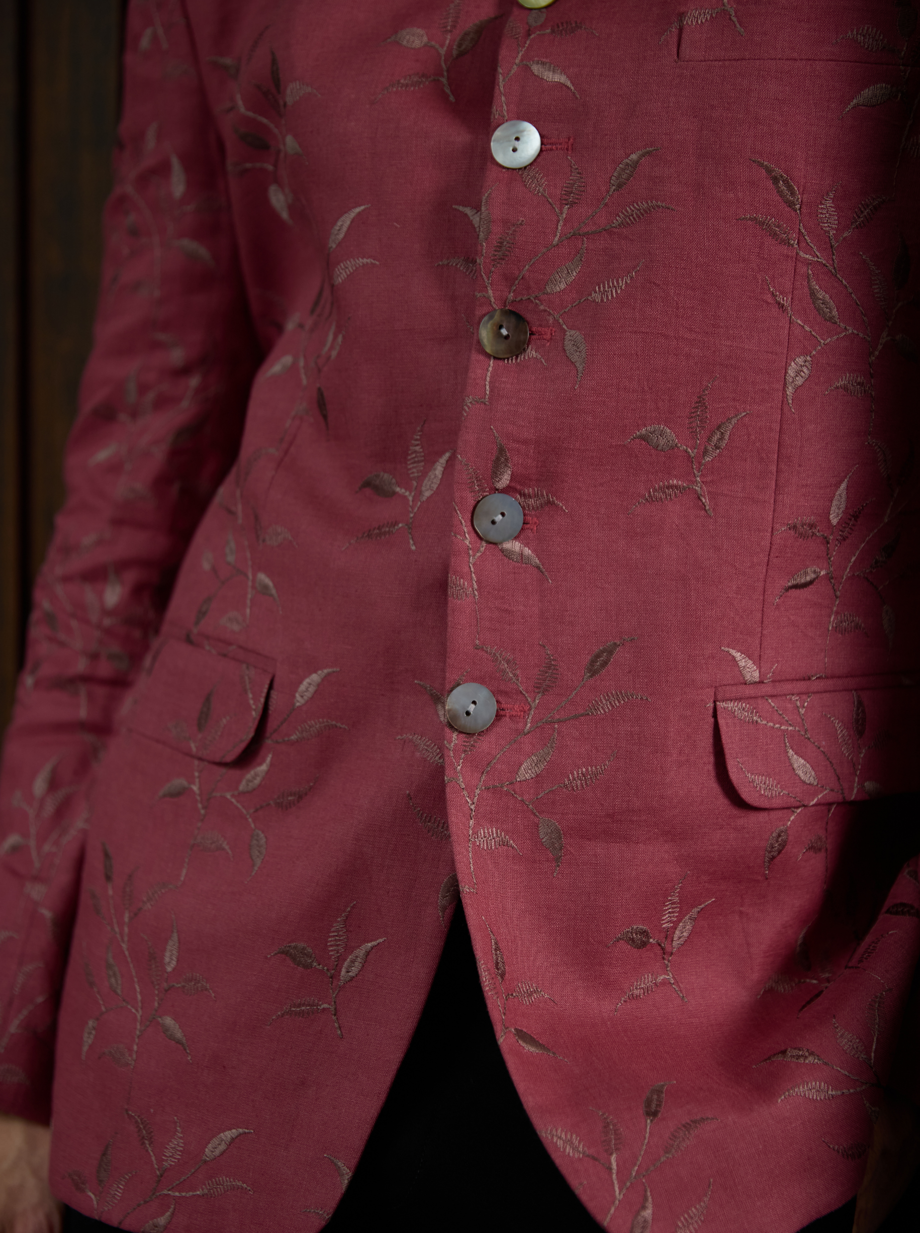 Commanding and contemporary, the Burgoyne linen bandhgala in Red makes a striking statement while offering all-day comfort. Expertly tailored from 100% linen crafted from the finest European flax, it delivers lightweight breathability and a comfort fit that moves with you. Finished with functional pockets, it pairs tradition with modern wearability. Whether worn for celebrations or sophisticated evenings out, this bold red bandhgala showcases over a century of Burgoyne’s signature craftsmanship and style.