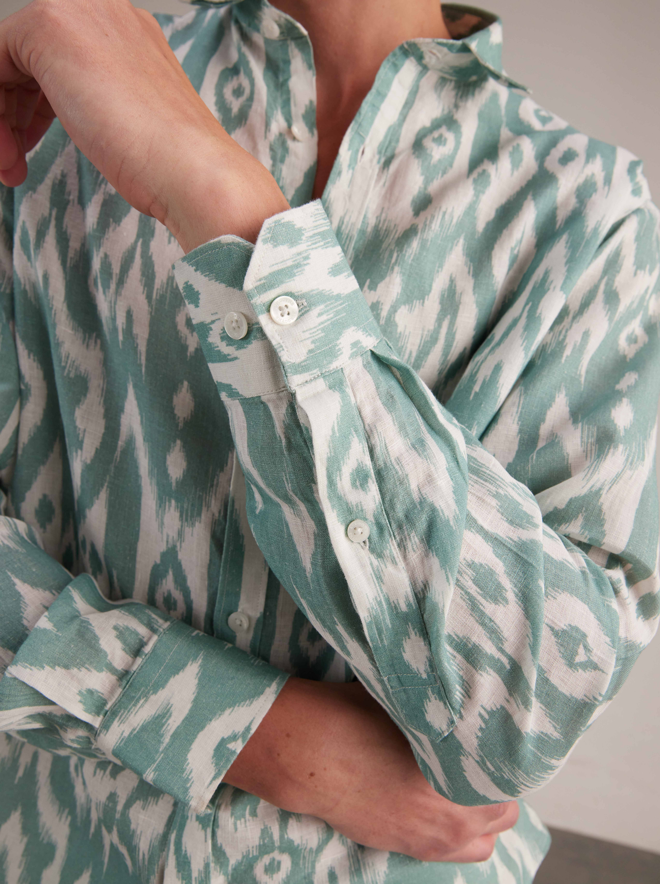 Stay cool and comfortable with the Burgoyne shirt, now available in Seagreen Ikat shade. Made from 100% premium linen, it’s lightweight, breathable, and softens with every wear. Featuring a mandarin collar and full sleeves, this versatile shirt is perfect for any occasion. With over a century of expertise since 1912, Burgoyne is known for quality that lasts. Inspired by the Common Swift, our signature mark, this shirt blends tradition, comfort, and sustainability—making it a great addition to your everyday wardrobe.