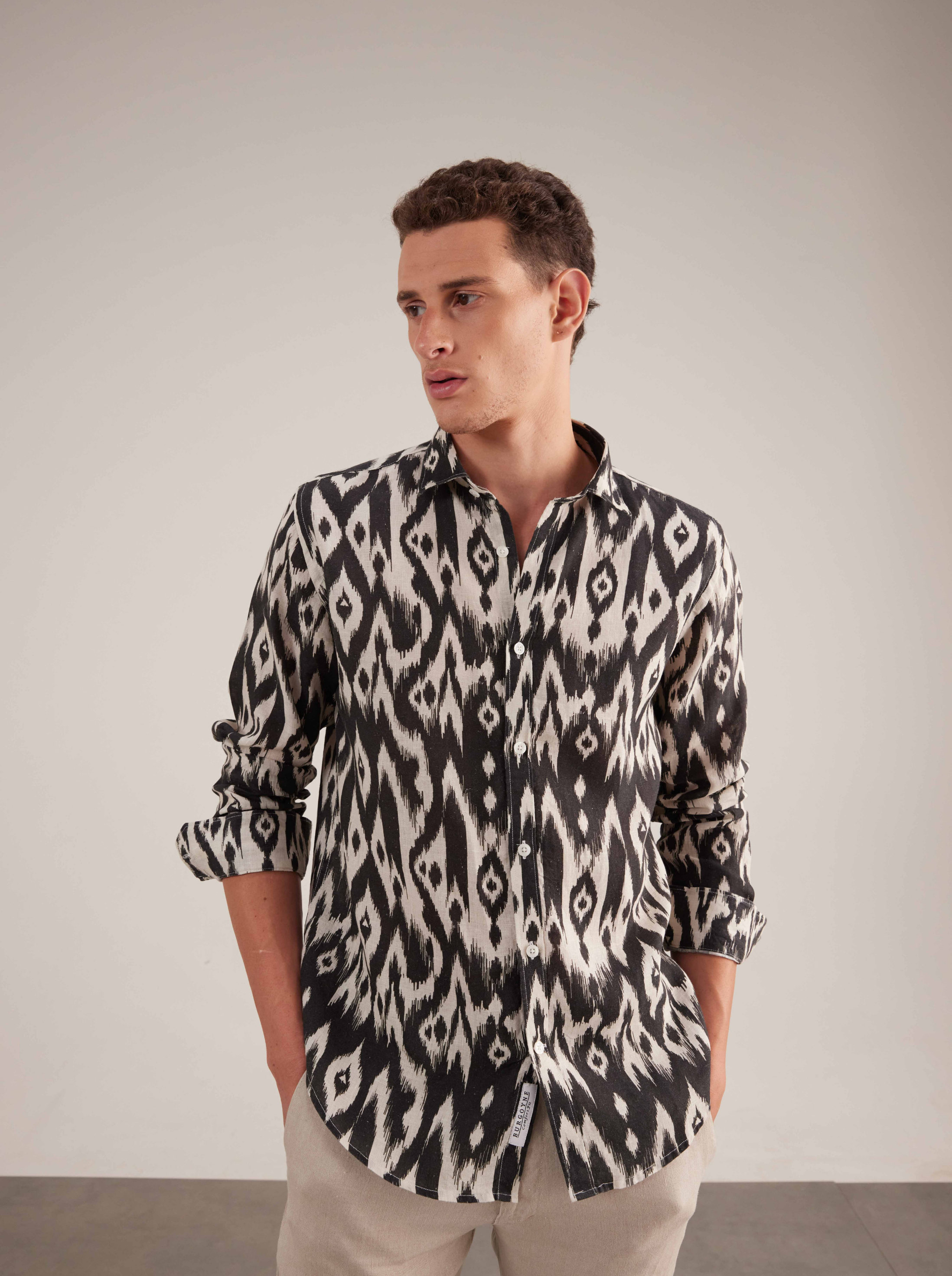 Stay cool and comfortable with the Burgoyne shirt, now available in Black Ikat shade. Made from 100% premium linen, it’s lightweight, breathable, and softens with every wear. Featuring a mandarin collar and full sleeves, this versatile shirt is perfect for any occasion. With over a century of expertise since 1912, Burgoyne is known for quality that lasts. Inspired by the Common Swift, our signature mark, this shirt blends tradition, comfort, and sustainability—making it a great addition to your everyday wardrobe.